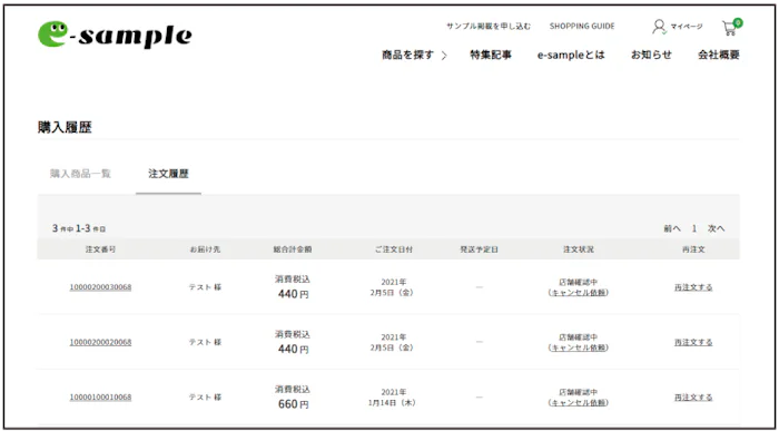 マイページの「購入履歴」から、注文状況を確認することができます。